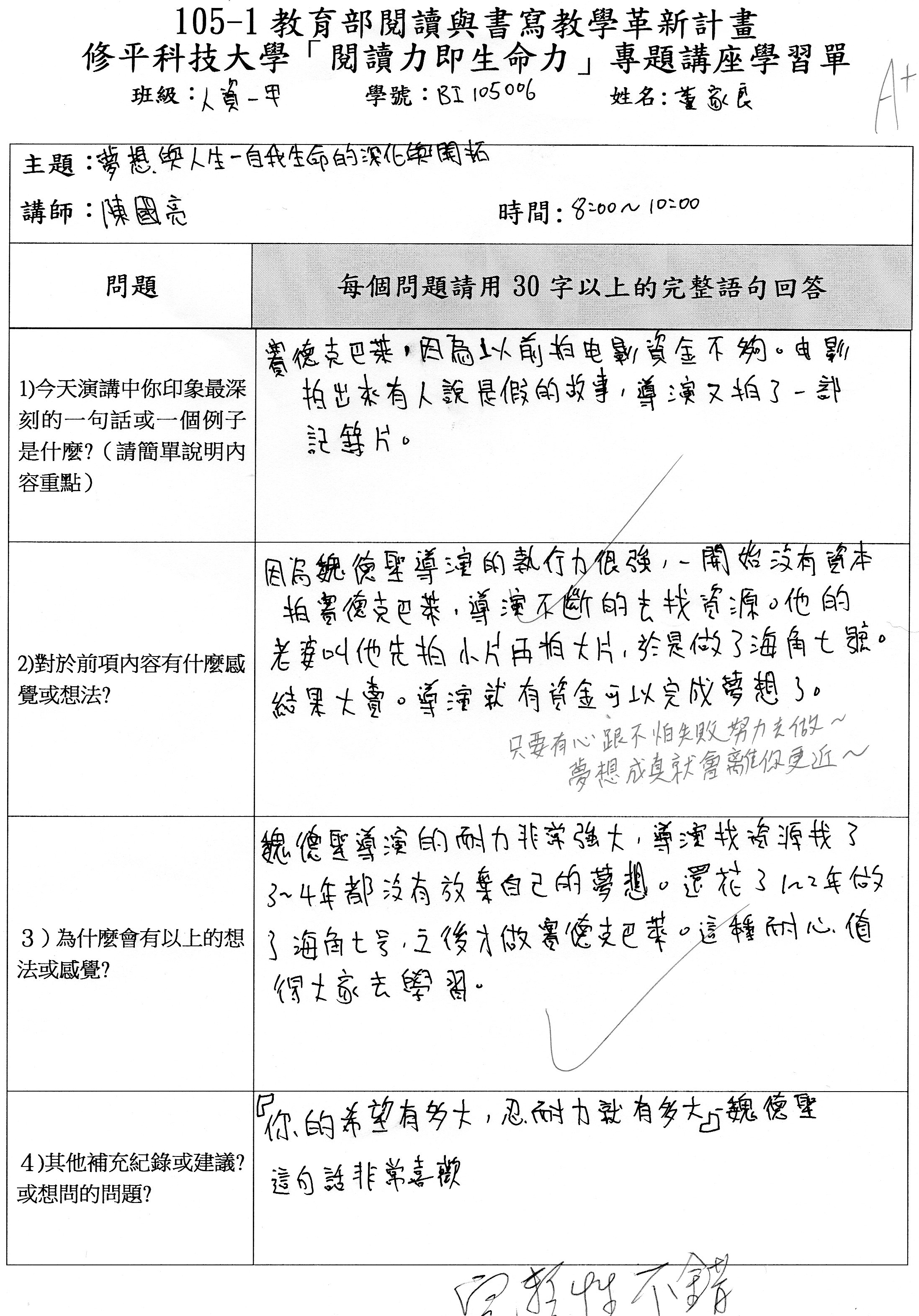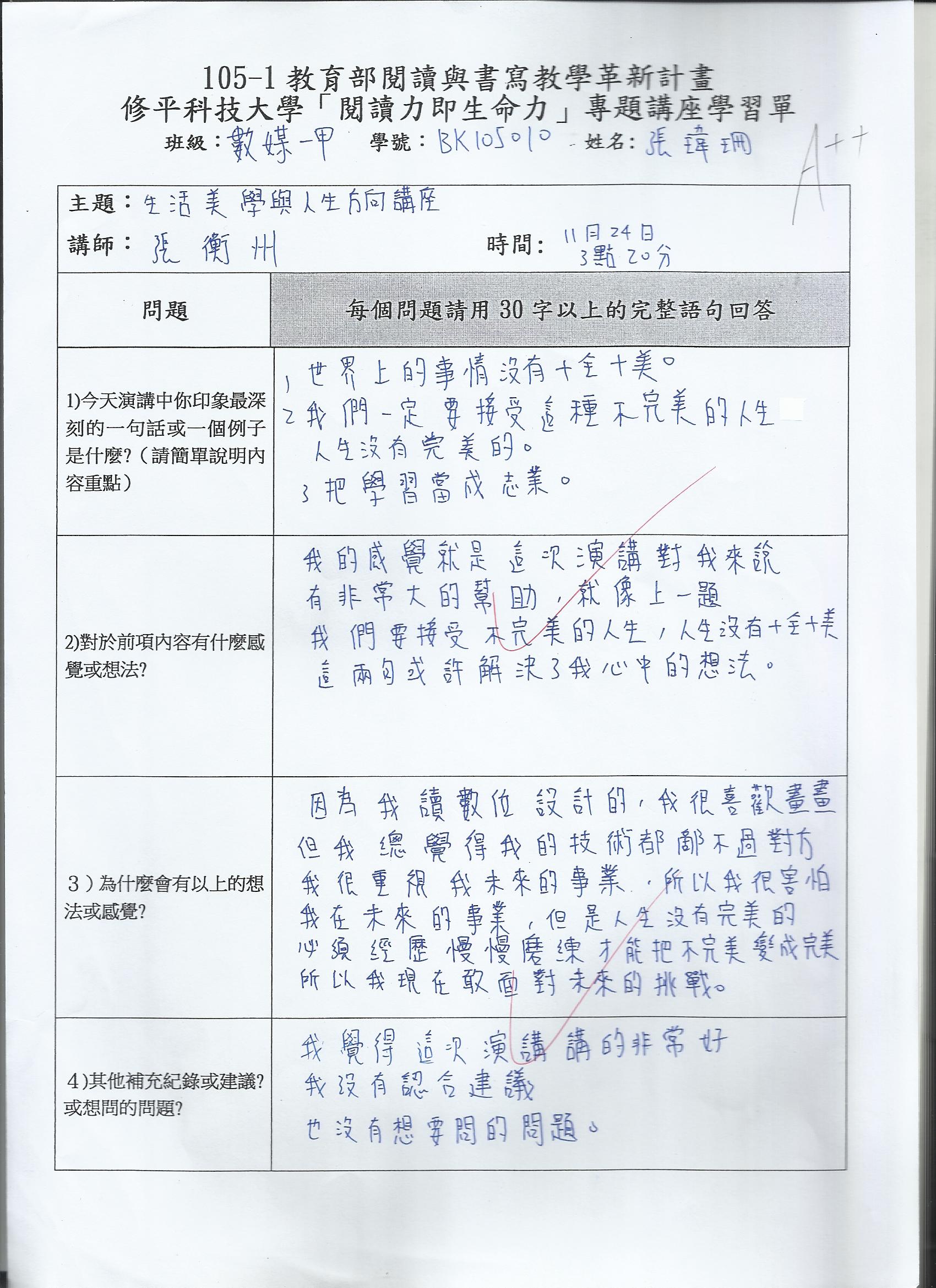 講座心得與課堂學習單