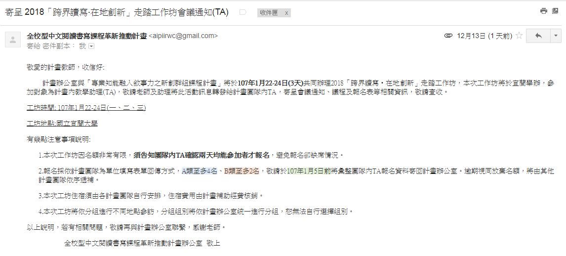 【辦公室公告】2017年閱讀.書寫.經典創意教學工坊會議通知