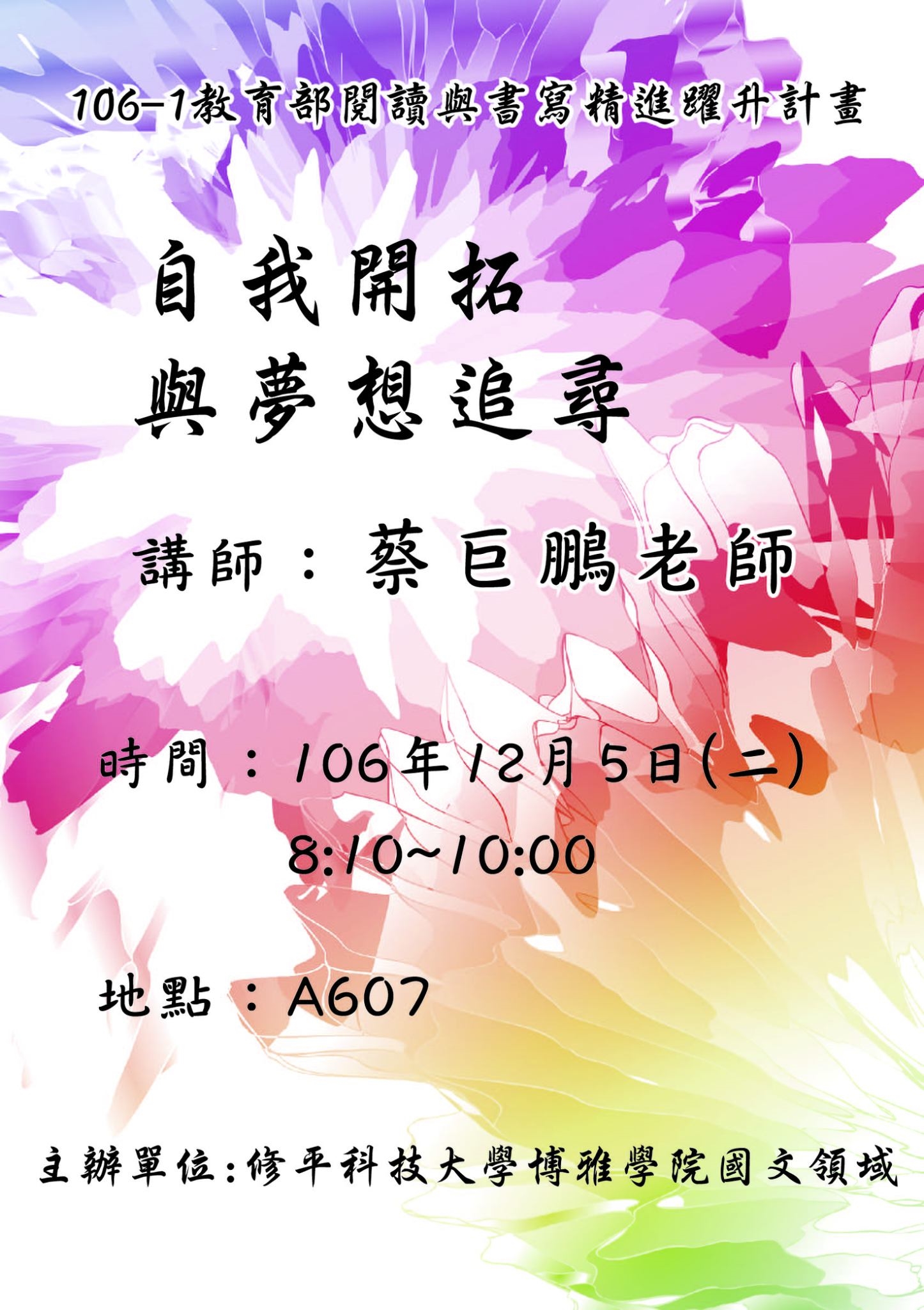 【辦公室公告】106年10月26日「自我開拓」自我與人生的對話