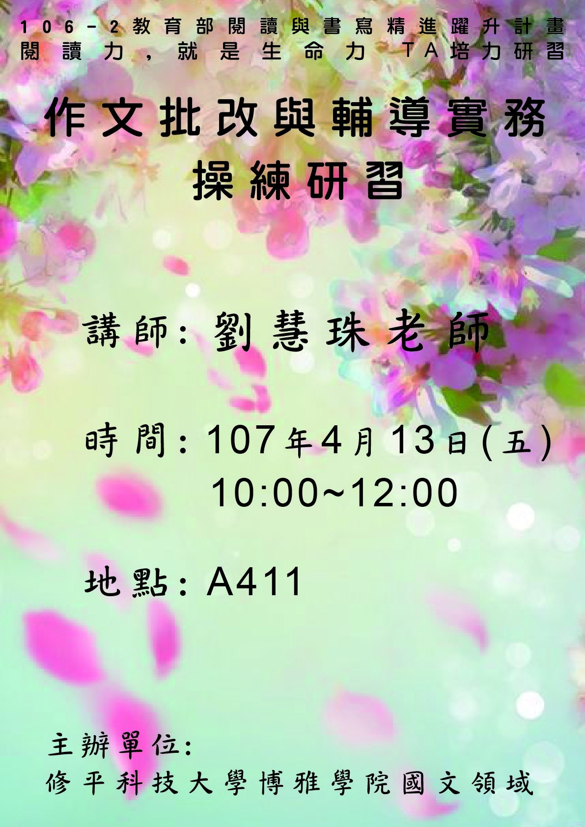 【辦公室公告】2017年閱讀.書寫.經典創意教學工坊-3月26日教師暨TA社群研習