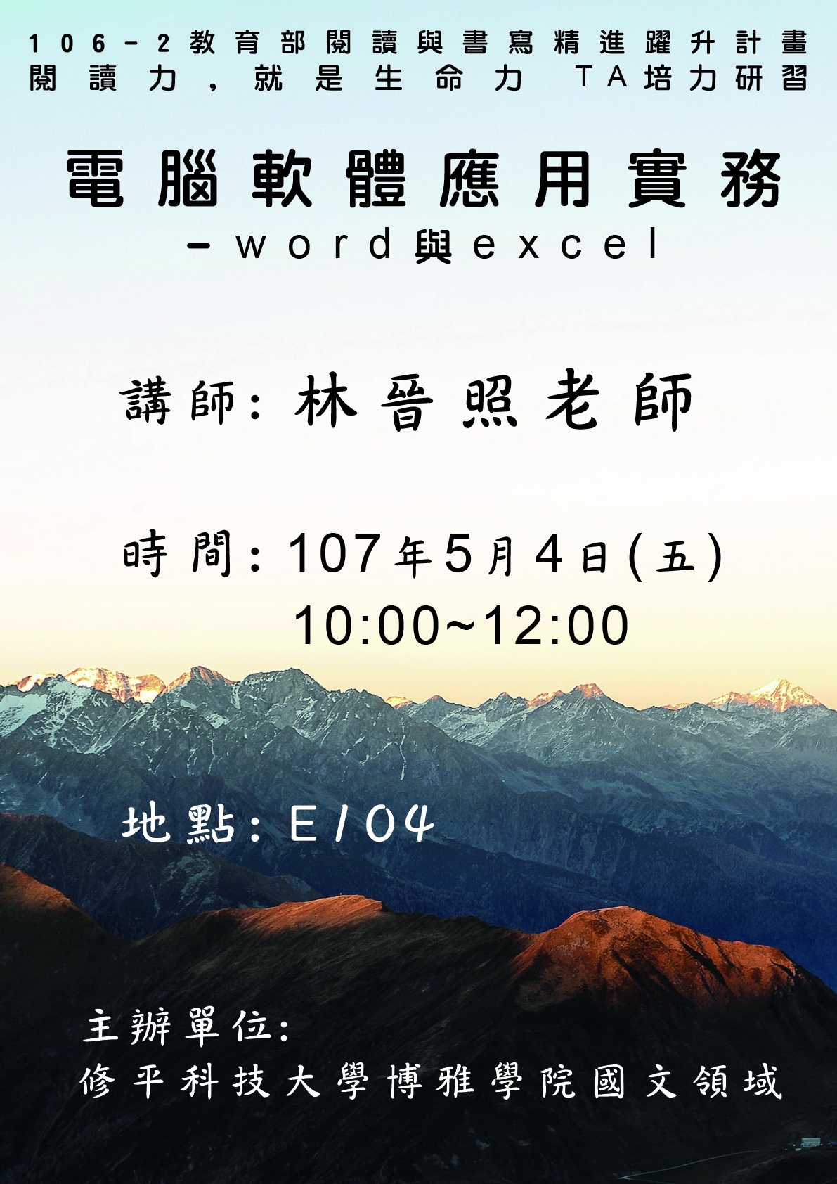 【專題演講】107/5/4 電腦軟體應用實務-word與excel