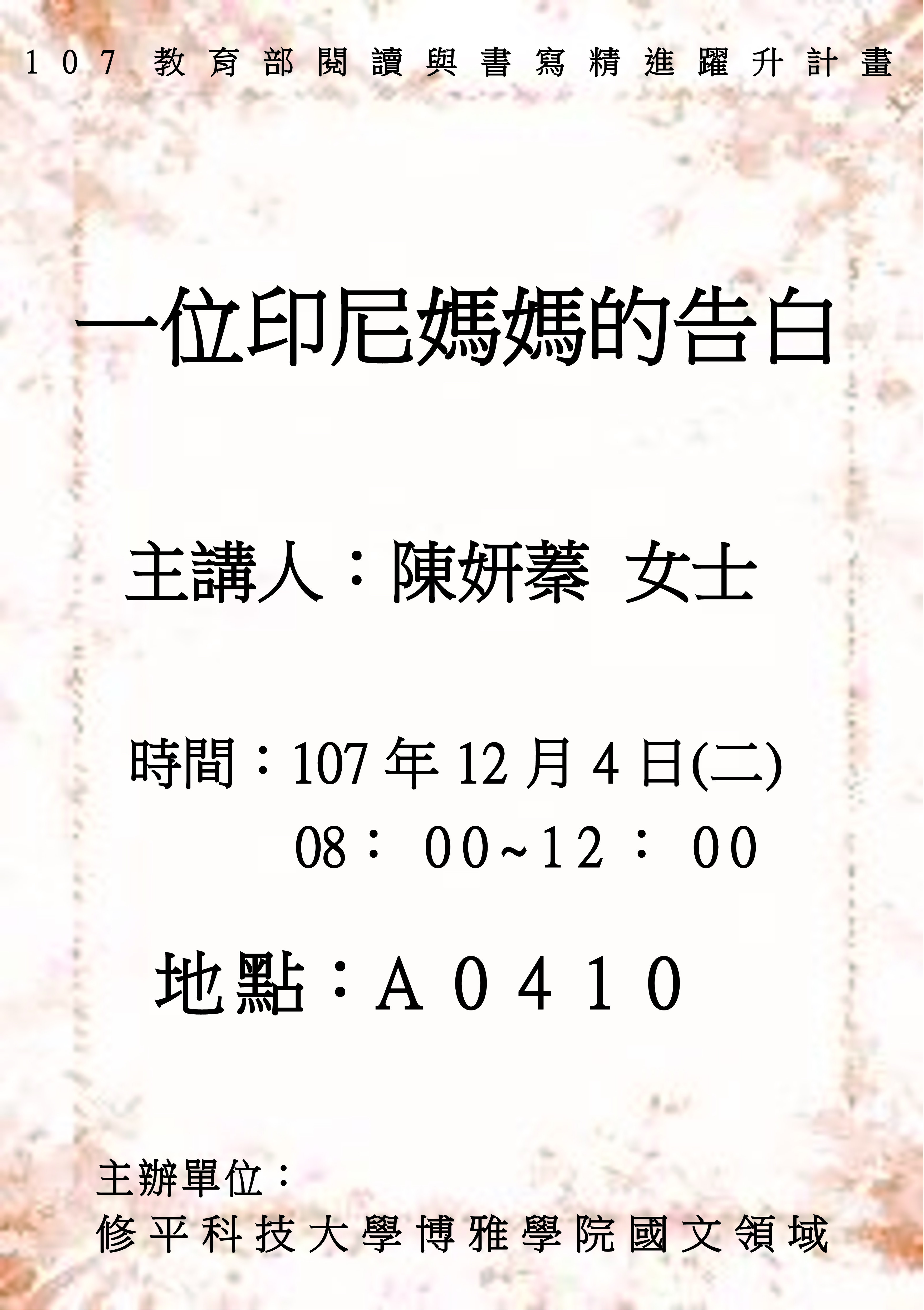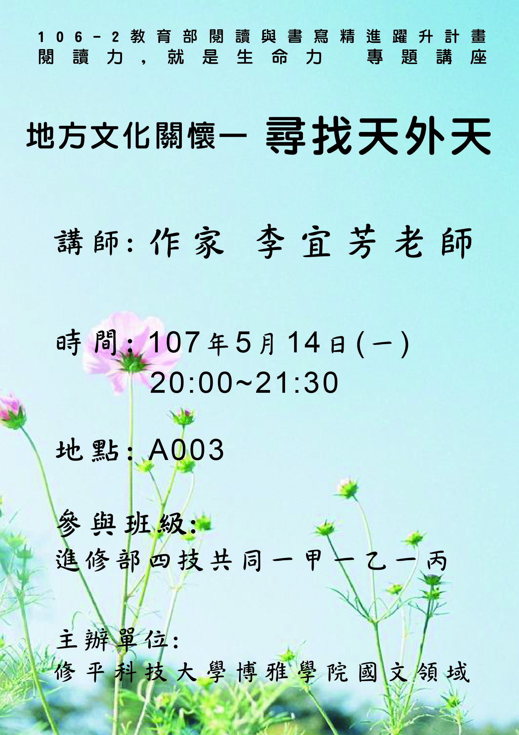 【辦公室公告】106年5月6日國立屏東大學辦理「關照生命 放眼世界--閱讀與書寫工作坊」
