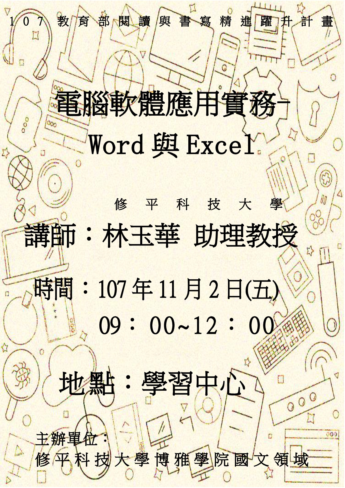 【專題演講】107/11/2 電腦軟體應用實務-Word與Excel