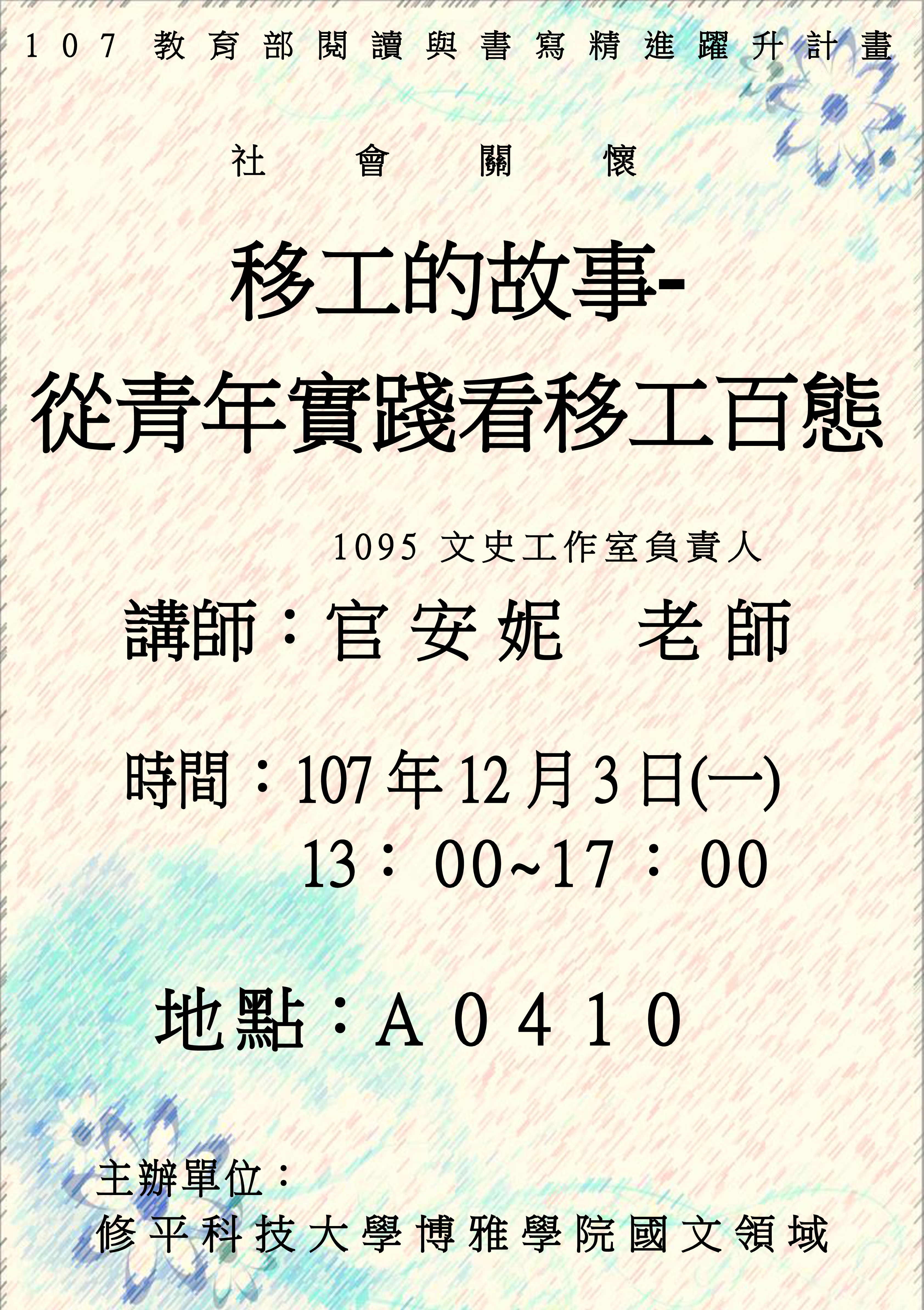 【專題演講】107/12/03 移工的故事-從青年實踐看移工百態