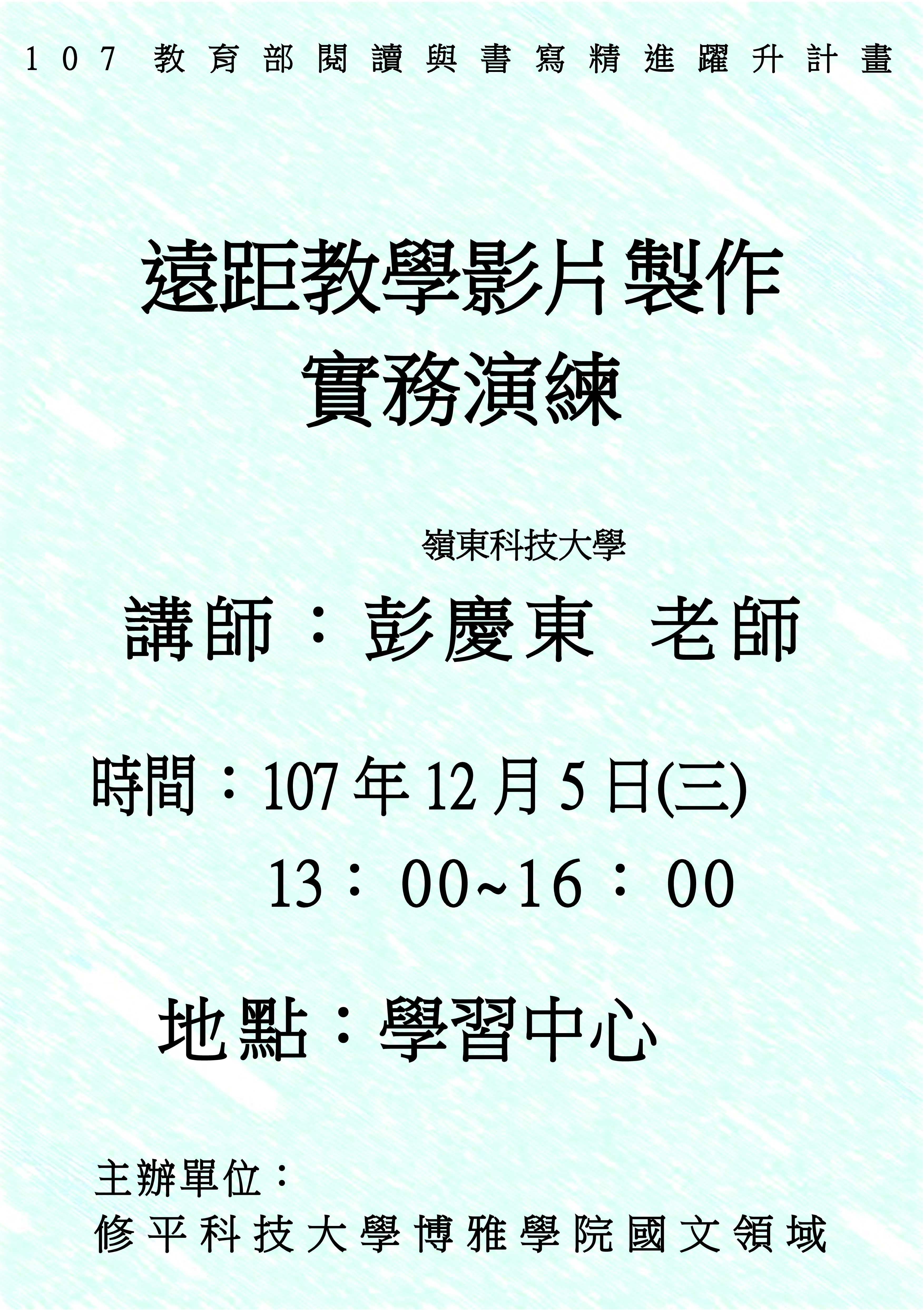 【辦公室公告】106年6月9日高雄海洋科技大學辦理教學觀摩&影像紀錄研習
