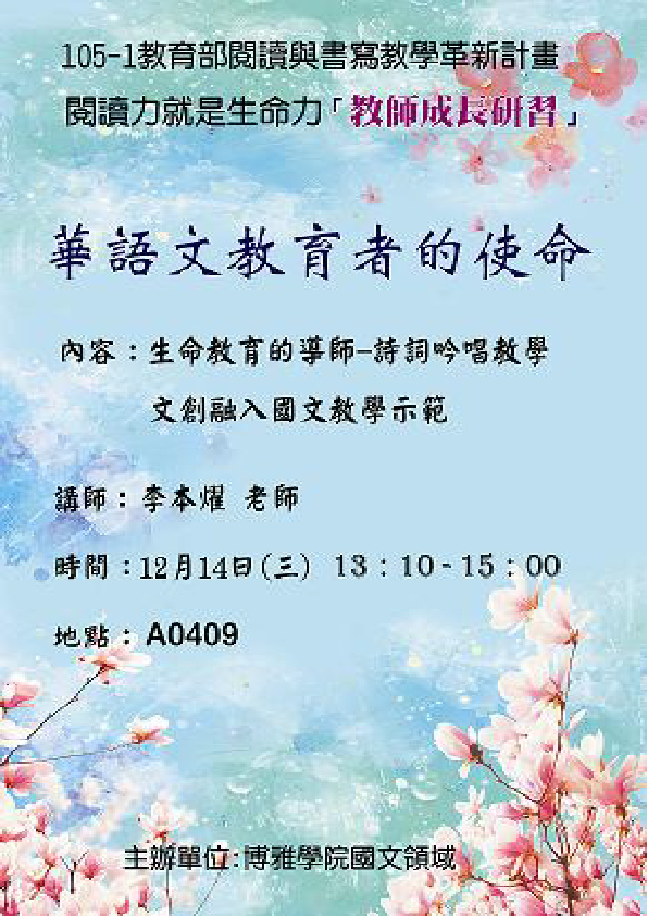 105年12月14日辦理教師研習-華語文教育者的使命
