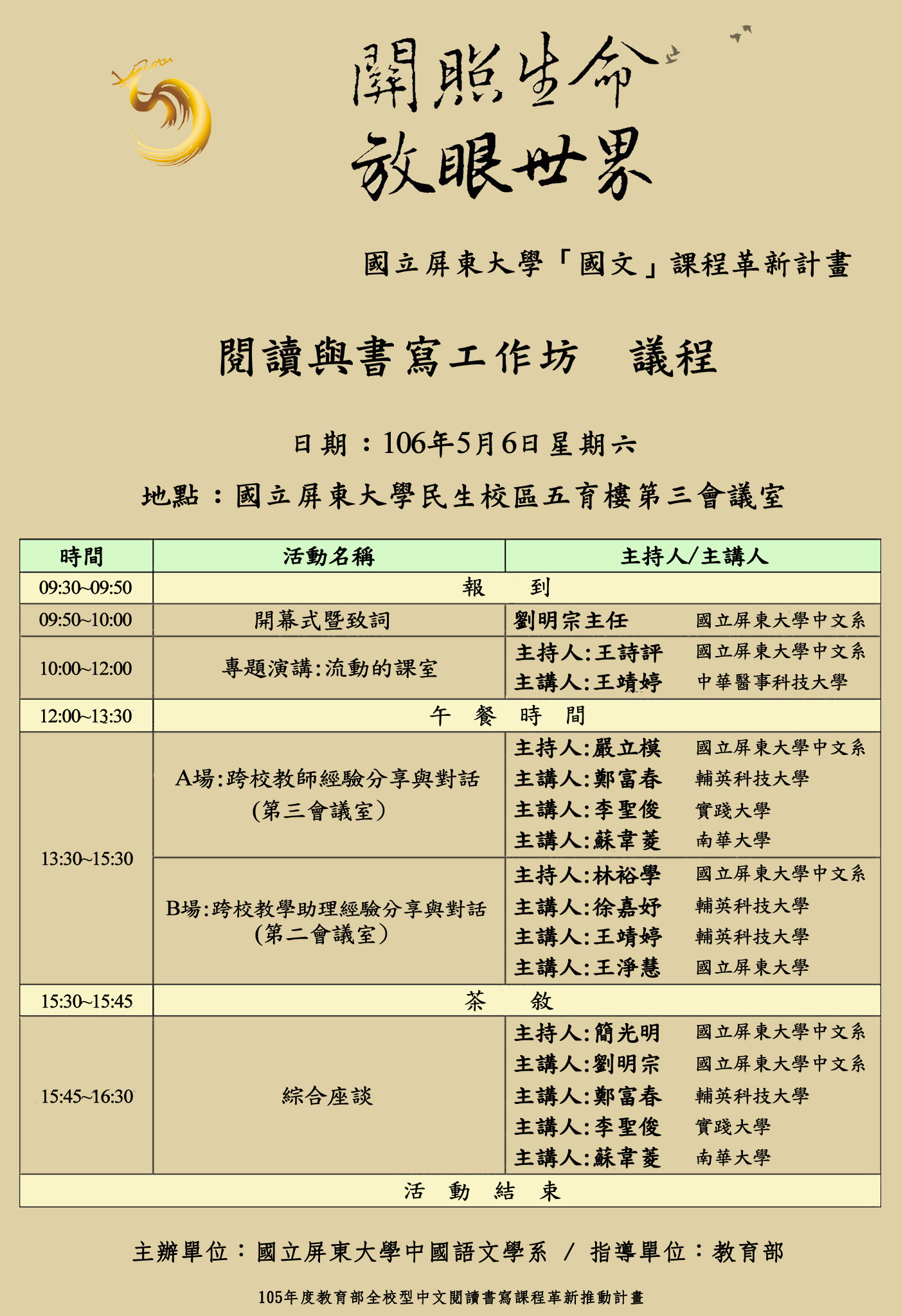 106年5月6日國立屏東大學辦理「關照生命 放眼世界--閱讀與書寫工作坊」