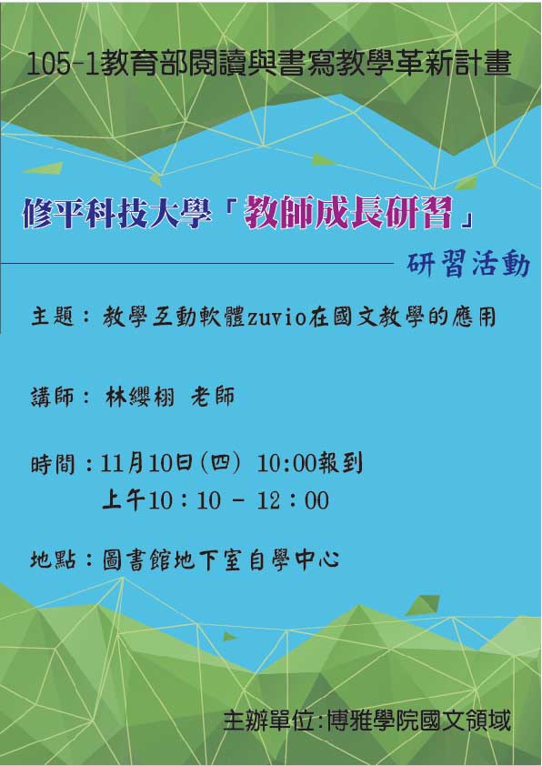 105年11月10日辦理教師研習-教學互動軟體Zuvio在國文教學的應用